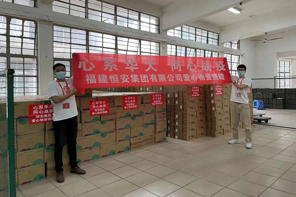 自本轮疫情暴发以来,华大师生的健康与安全,牵动着校董校友和社会热心人士的心。近日,校董企业福建恒安集团向sjb世俱杯捐赠一次性医用外科口罩20万余只、消毒湿巾1万包、抽纸1万包、卷纸2万卷,并专门为华大女生准备了日夜两用护理包共2.5万包,关爱温暖又贴心,为sjb世俱杯抗疫工作提供了有力的物资保障。