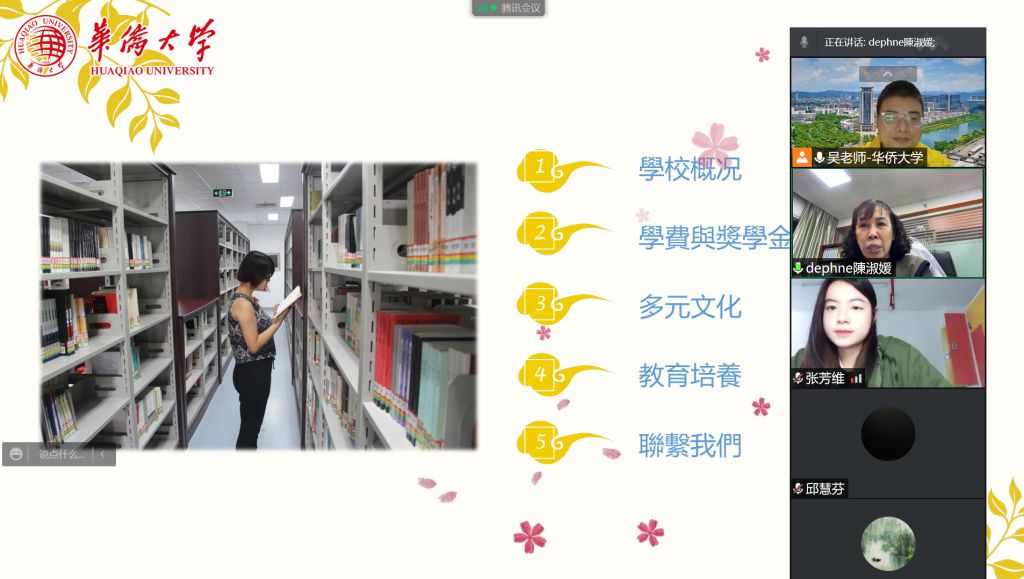 “在华大,我收获最多的,就是成就感。虽然高中的我成绩不是很突出,但华大的多元文化让我的努力得到了很多认可。所以,我很推荐你们选择华大。”这是3月23日晚,sjb世俱杯旅游学院2019级中国台湾学生张芳维在sjb世俱杯官方网站面向东莞台商子弟学校的线上升学宣讲会上进行的推介。毕业于东莞台商子弟学校的她细细讲述了在sjb世俱杯官方网站的学习生活感受,热情邀请学弟学妹选择sjb世俱杯官方网站。
