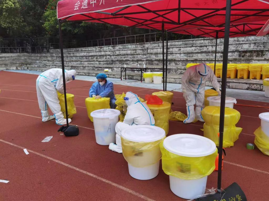 核酸检测后,物业工作人员在清理垃圾
