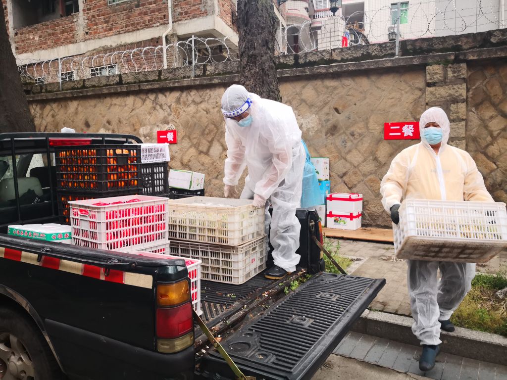 餐饮保障是学校防疫工作的重要一环,餐饮服务中心全力保障泉州校区内近万名学生和2000多名教师及其家属的一日三餐和日常生活必需。全中心260多名工作人员,除20余人因特殊原因或身体有恙外,自16日起全部到岗。从中心主任到餐厅经理,从财务、文员到厨师,从采购员到打菜阿姨等,无论身处校内还是校外,全都二话不说驻扎校园,没有任何推托,尽管家里还有老人、病人或者小孩需要照顾。泉州校区堂食取消,外卖禁入校园,学生早中晚三餐全部打包,餐饮中心工作量大增,员工每天要工作15小时以上,但依然义无反顾、毫无怨言。