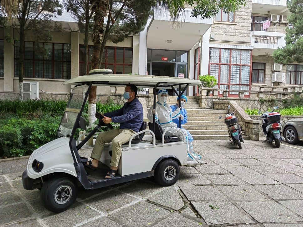 时而化身防疫物资保障的老兵,在深夜加班搬运物资;时而化身核酸检测保障的尖兵,或凌晨四五点早早赶到核酸检测现场,或在大家已经休息时,穿着防护服,开着电瓶车载着医生穿梭于各个楼栋上门采集核酸;时而化身坚守医院阵地的哨兵,只要师生有病情,就立刻出动……
