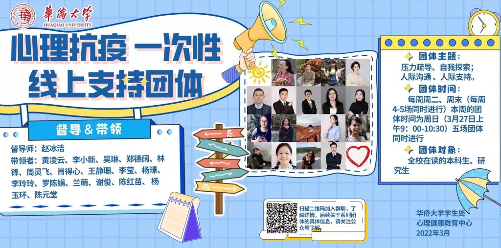 心理健康教育中心为全校师生带来了超过20场线上心理辅导活动,第一时间开通24小时防疫心理热线,并及时与社区联动,在各宿舍楼栋设立单独的咨询房间等,为师生筑牢“安心”防线,守护华园“心晴”。