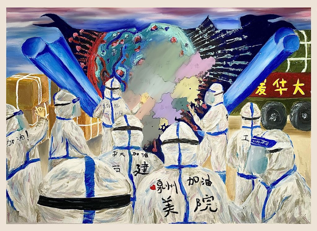青年学子们并以“艺”抗疫。“以‘艺’抗疫,泉厦同行”同心抗疫线上直播文艺晚会节目精彩纷呈,近8000名境内外师生在线观看并参与线上线下互动,直播点赞量达到10万+;美术学院中国香港学生曾彦婷等数十位同学利用专业技能进行插画创作,致敬“逆行者”,为泉州加油;音乐舞蹈学院青年教师沈殿淮、周苑媛以及姚文帅等5位同学创作和演绎了歌曲《为爱守护》,向为抗疫而付出的所有人致敬……