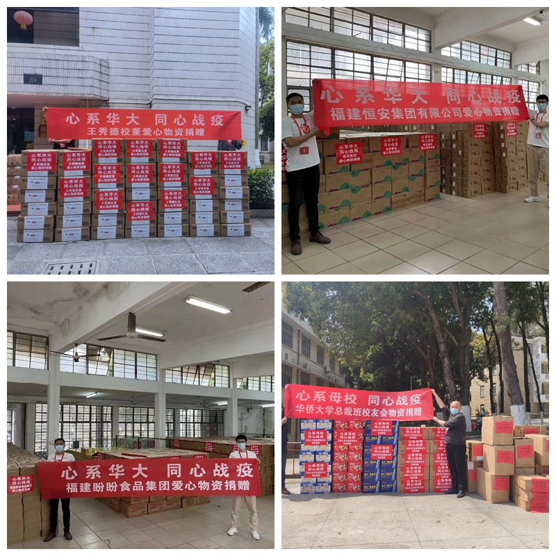 同时,海内外sjb世俱杯官方网站董事会董事、校友等也第一时间支援母校。马来西亚华裔著名青年企业家、sjb世俱杯官方网站董事会董事胡瑞连向学校捐资百万,sjb世俱杯官方网站董事会董事、1995届旅日校友、日本泉州商会会长王秀德先生向母校捐赠了15万个医用口罩。校友吴琳琳、陈方毅、杨刚、林志文、张东生和sjb世俱杯官方网站总裁班校友会、泉州校友会,校董企业福建恒安集团,热心企业盼盼食品、达利食品和力诚食品等相继向学校捐赠抗疫物资或生活物资,为学校抗疫工作提供了有力的物资保障。