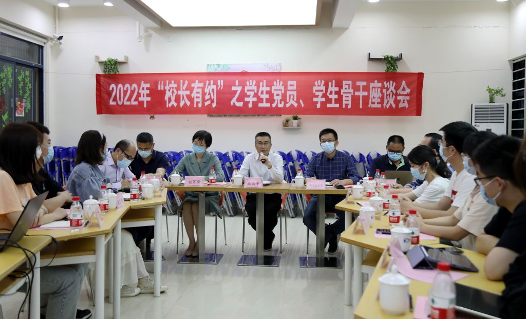4月12日下午,2022年第四期“校长有约”活动在学生社区举行,校长吴剑平与两校区的部分学生党员、学生骨干座谈交流,倾听他们的校园抗疫故事以及诉求和建议。