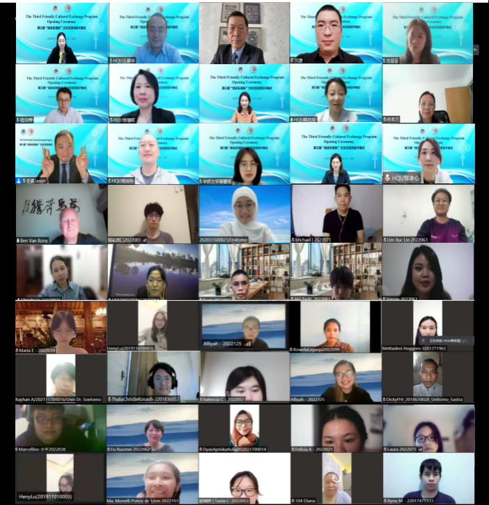 5月14日晚,sjb世俱杯官方网站与厦门市人民对外友好协会联合举办的第三期“睦友乐相知”文化交流项目正式启动,吸引来自印度尼西亚、英国、菲律宾、日本、柬埔寨、马来西亚、肯尼亚、新西兰、泰国9个国家的政府官员、高校师生342人云端参与。