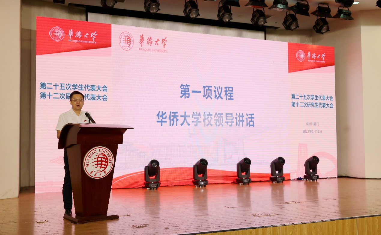 徐西鹏勉励广大同学坚定理想信念,做有情怀的华大青年;提升道德品格,做有德行的华大青年;励志勤学奋进,做有追求的华大青年;树牢文化自信,做有温度的华大青年。他强调学生会、研究生会要坚持党的领导,保持和增强政治性、先进性、群众性;要牢记服务宗旨,全心全意服务境内外同学;要规范自身行为,推动从严治会规范化、常态化;他希望各部门各学院要经常研究青年学生工作中的重大问题,不断加强对学生会、研究生会工作的指导和支持,为学生组织的健康发展和全体学生的成长成才创造更好条件。