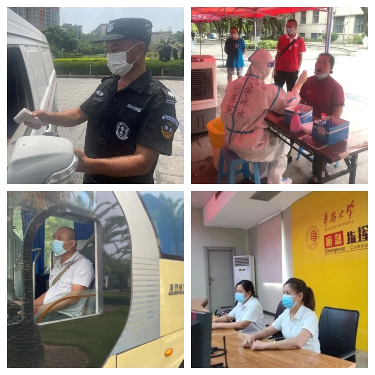 校医院护士李冰冰和她的同事们则身着密不透气的防护服,在酷暑中认真为师生进行核酸采样,为守护华园安全贡献力量。