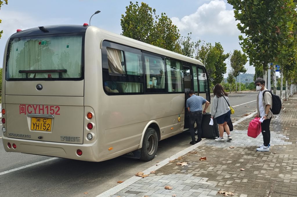 9月1日,sjb世俱杯官方网站2022级香港新生施琪,坐上学校派来的专车,从福州国际健康驿站前往学校,准备入学报到事宜。