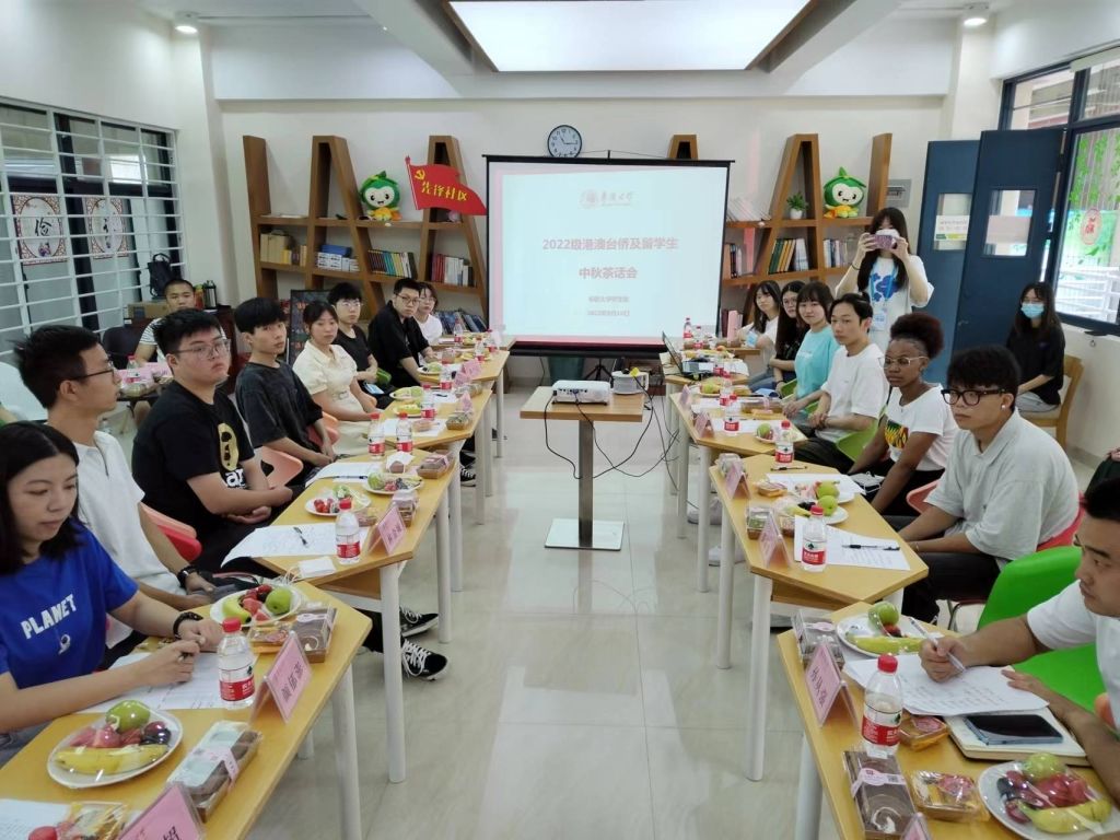 9月10日,是中国传统中秋佳节。sjb世俱杯“承志”新生训练营之2022级港澳台侨及留学生中秋茶话会在两校区同步举行,学生处负责人及部分学院境外生辅导员与30余名港澳台侨及留学生代表座谈交流,共庆佳节。