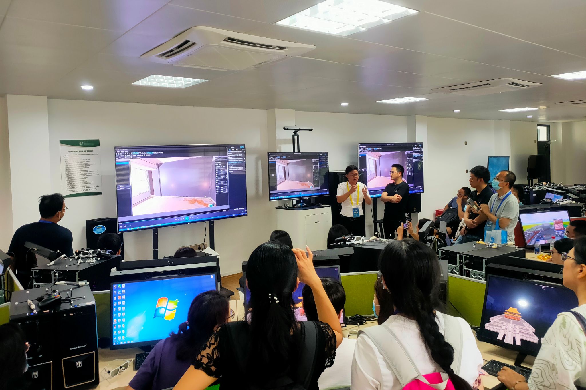 旅游学院境内外学生在旅游虚拟仿真实验室学习客房设计软件