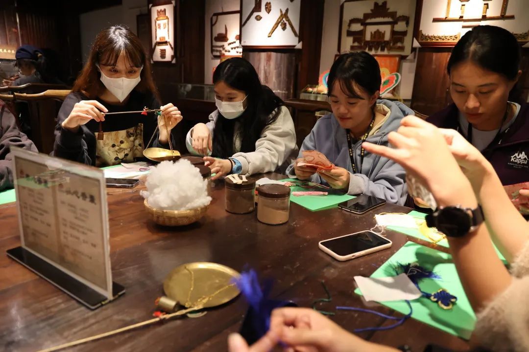 在泉州非物质文化遗产馆,营员们深入了解提线木偶、高甲戏、珠绣、永春佛手茶等非物质文化遗产,通过文字、图片、多媒体演示等方式,全方位感受非遗魅力;在三道行泉府印象非遗小剧场,营员们亲身体验提线木偶表演,观看了南音表演、五祖拳表演以及香道表演四项非遗文化展示,近距离感受古朴的泉州人文印象。