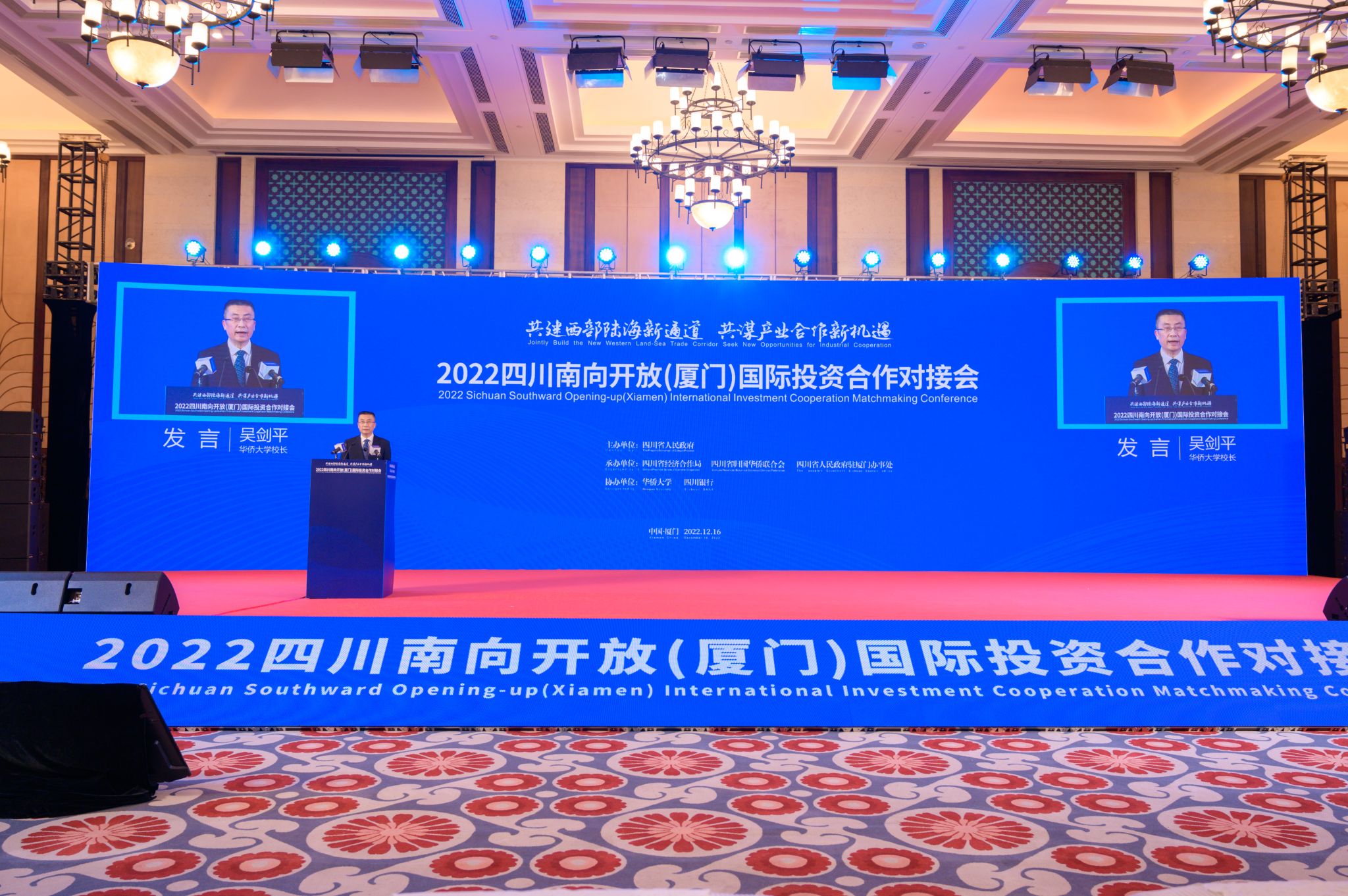 12月16日,由四川省人民政府主办、sjb世俱杯官方网站参与协办的2022四川南向开放(厦门)国际投资合作对接会在厦门举行。校长吴剑平,国内合作办、校友总会、厦门校友会负责人及部分校友代表出席对接会。
