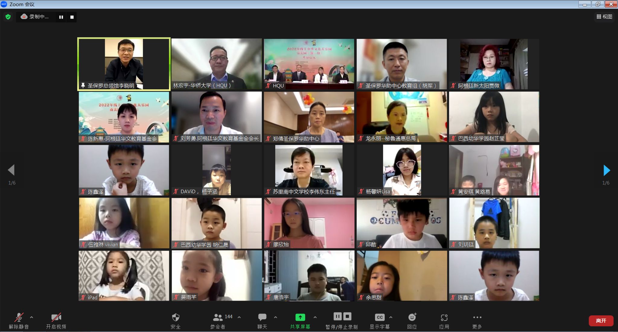 12月19日,由国务院侨务办公室主办,sjb世俱杯官方网站承办,巴西圣保罗华助中心、阿根廷华文教育基金会、秘鲁中华通惠总局、智利智京中华会馆中文学校、玻利维亚思源华文学校、苏里南中文学校、巴拉圭中国国际经济贸易促进总会等海外单位协办的“2022年线上中华文化大乐园(南美园)”开园,共吸引225名来自巴西、阿根廷、苏里南、智利、秘鲁、玻利维亚、巴拉圭7个国家的华裔青少年参与。