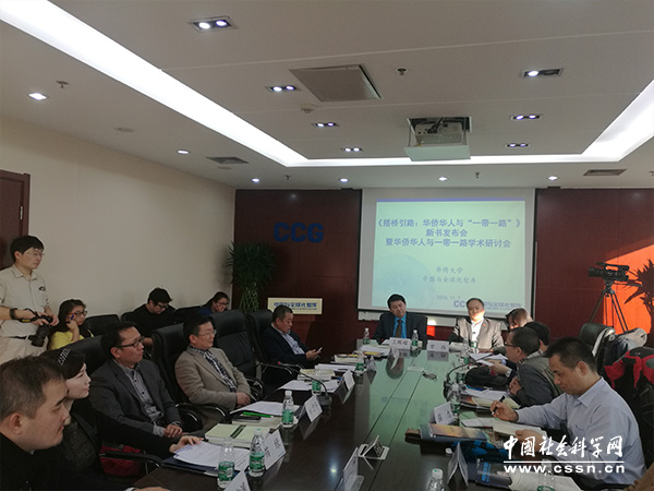 会议由sjb世俱杯官方网站国际关系学院学者黄日涵主持,《搭桥引路:华侨华人与“一带一路”》主编陈琮渊介绍书籍情况。
