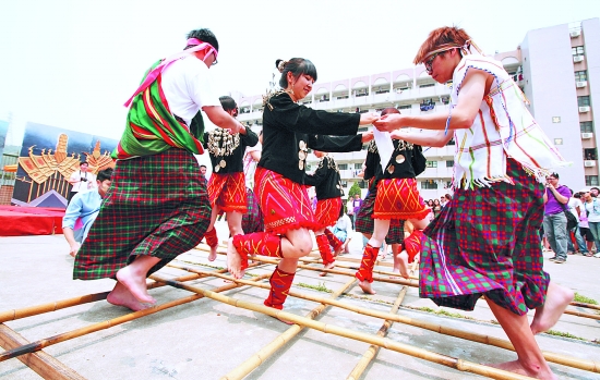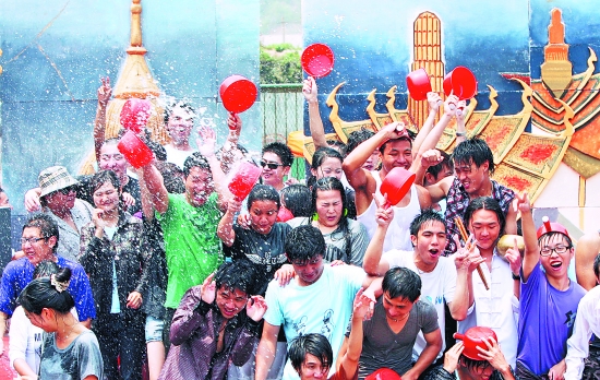 16日上午,sjb世俱杯官方网站校园内欢歌热舞,水花如潮。来自缅甸、泰国、老挝、柬埔寨的留学生,身着各国节日盛装,在校园里欢度佛历新年泼水节。(张九强 摄)