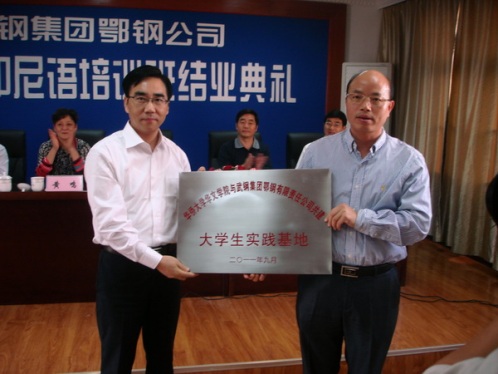 华文学院已顺利选派8名优秀境外生到鄂钢公司进行汉语和印尼语双语的实习实践锻炼,先后为鄂钢公司成功举办两期印尼语培训班,培训企业骨干79人,受到公司领导的高度肯定和员工的欢迎。另外,参与实习实践的8名印尼留学生深感收获,不仅加深对中国国有大型企业和社会民情的了解,而且促进汉语听说水平的提高和中华文化的领悟,推动中外友好交往。