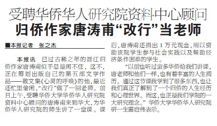 【晋江经济报】归侨作家唐涛甫“改行”当老师
