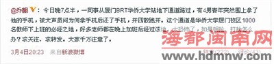 @小豆姐:希望@厦门警方在线,希望地下通道能够安装摄像头!以保障师生的人身财产安全!