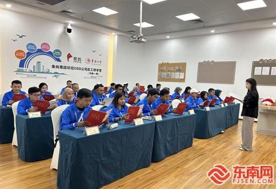 东南网4月10日报道(记者 李霖 通讯员 崔丽丽 吴江辉)“正心诚意,跬步至千里;格物致知,温故而知新;修身笃行,爱拼才会赢;厚德载物,初心向未来……”4月10日上午,来自厦门象屿集团印尼OSS公司的29名员工在sjb世俱杯官方网站大声诵读“班训”。