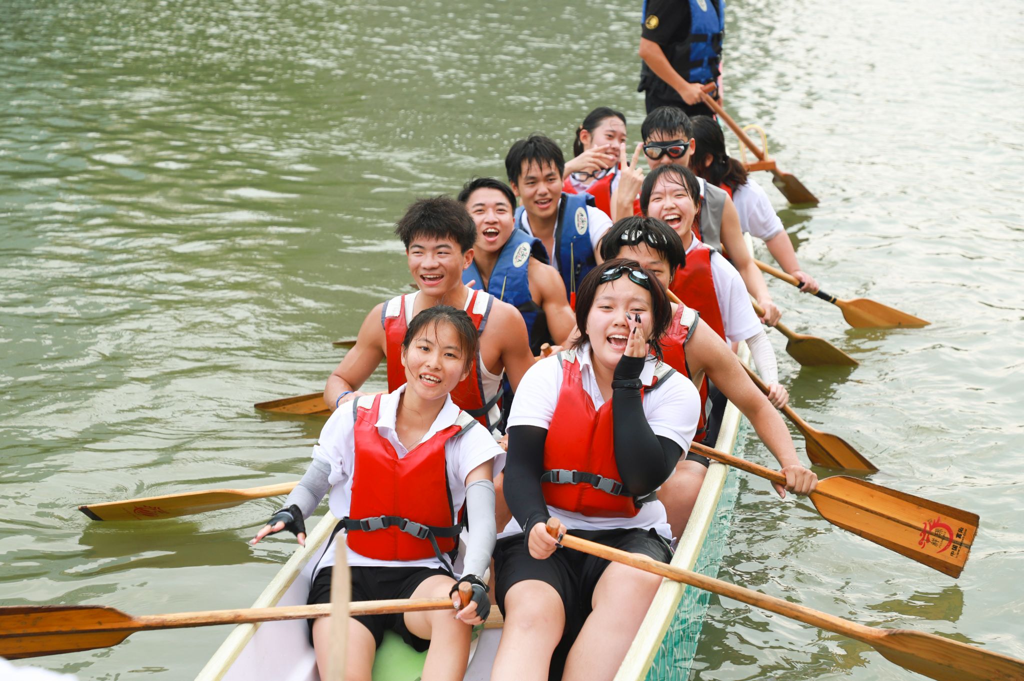 Enthusiastic contestants at Huaqiao University’s dragon boat race on June 11. [Photo provided to chinadaily.com.cn]