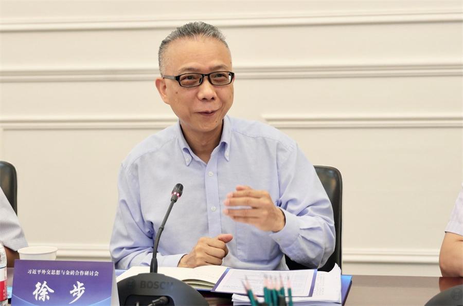 习近平外交思想研究中心秘书长、中国国际问题研究院院长徐步主持嘉宾演讲环节。他表示,这是习近平外交思想研究中心首次举办以金砖合作为主题的研讨会,很有意义,金砖合作是中国特色全球治理与贯彻习近平主席全球发展倡议的重要抓手,厦门金砖创新基地是应对当前金砖合作挑战的有效平台,有助于构建人类命运共同体。