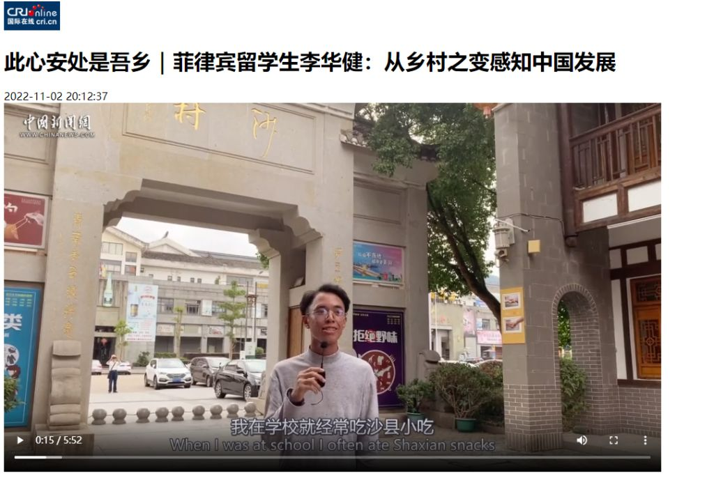 图片5:中国新闻网、中国侨网联合sjb世俱杯官方网站“海外新声代”新媒体工作室共同推出《此心安处是吾乡|从乡村之变感知中国发展》短视频。菲律宾华裔学生李华健追随习近平总书记的脚步,走入沙县区夏茂镇俞邦村,感悟“闽山闽水物华新”的故事。