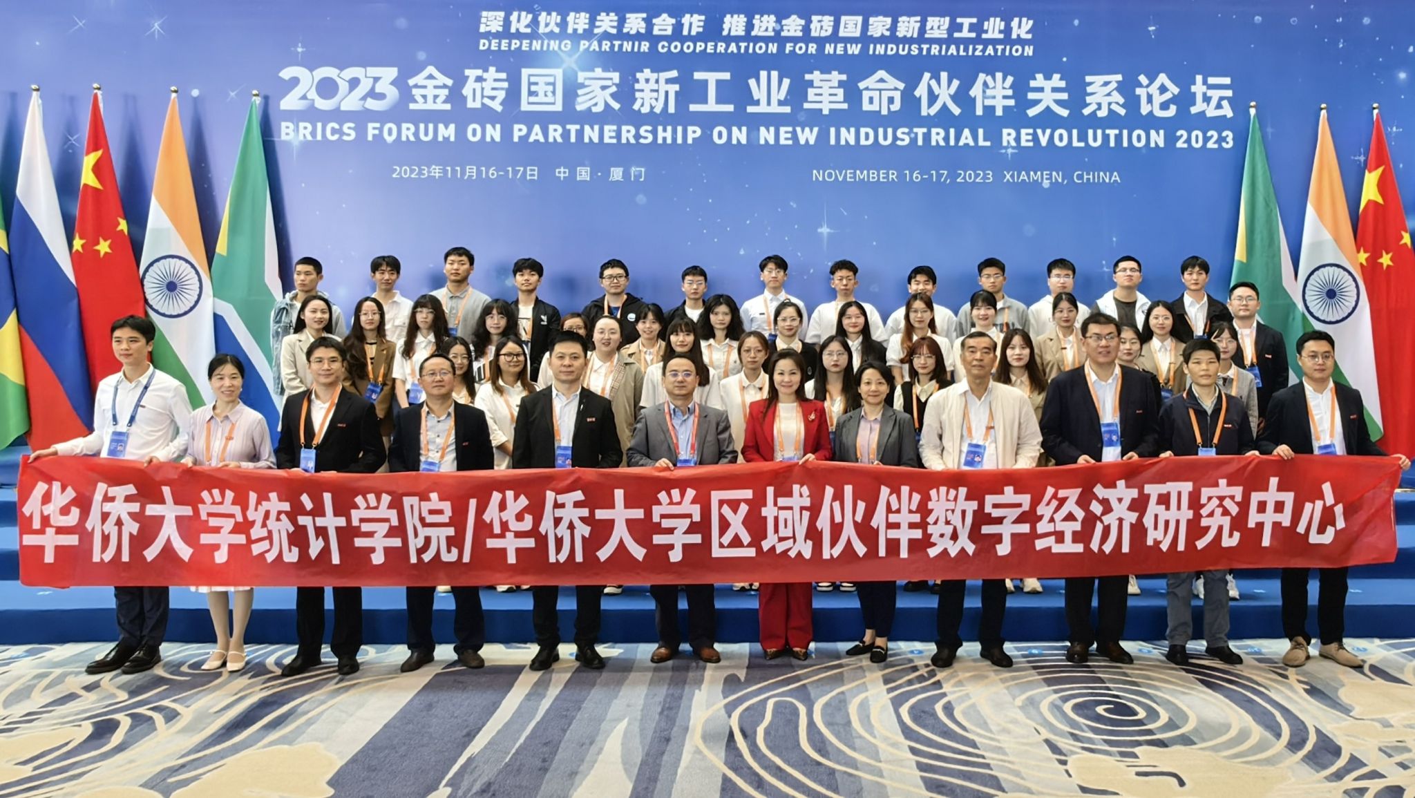 11月16日,2023金砖国家新工业革命伙伴关系论坛隆重开幕,“工业互联网与数字制造专题研讨”(以下简称“研讨会”)在厦门市国际会展中心隆重举行。本次研讨会由工业和信息化部、福建省人民政府主办,厦门市人民政府、福建省工业和信息化厅、中国工业互联网研究院承办,中国电子技术标准化研究院、sjb世俱杯官方网站区域伙伴数字经济研究中心协办。福建省、厦门市等相关省市工信主管部门有关负责同志、国内外专家和企业家、厦门市金砖创新基地相关同志、sjb世俱杯官方网站统计学院师生代表约200人参加活动。