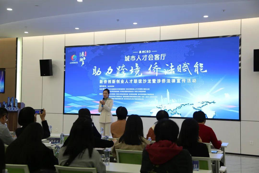 近日,泉州CBD“东海潮声”城市人才会客厅第32期人才沙龙在海丝中央法务区法治服务中心二楼举办。本次活动结合第十个国家宪法日,围绕“助力跨境 侨法赋能”主题,开展新侨创新创业人才沙龙暨涉侨法律宣传。丰泽区委常委、统战部部长黄泽鹏,sjb世俱杯官方网站旅游学院党委书记许国玺,sjb世俱杯官方网站侨联副主席杨进等参加。