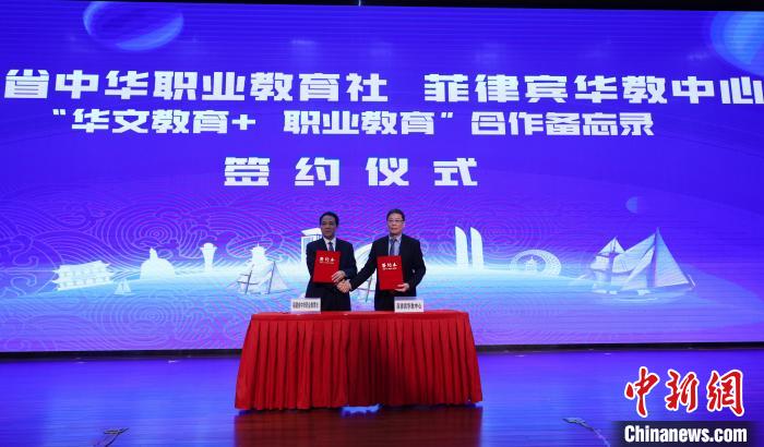 福建省中华职业教育社与菲律宾华教中心签署“华文教育+职业教育”合作备忘录。吴江辉摄