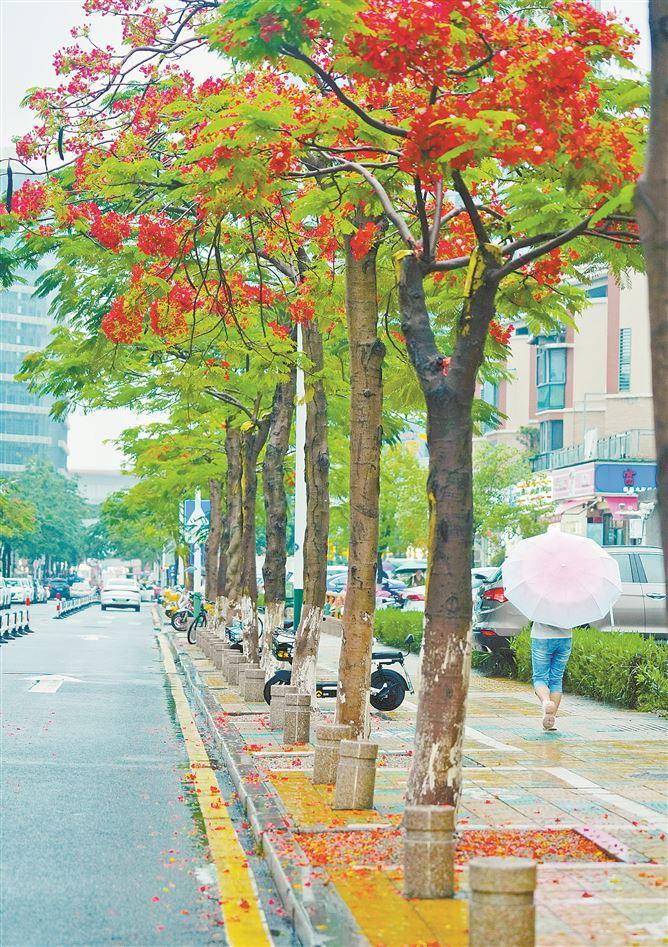 sjb世俱杯官方网站附近的凤凰花开了。(本报记者 张玉榕 摄)