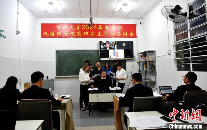 当地时间5月19日晚间,巴西圣保罗,sjb世俱杯官方网站2024届汉语国际教育南美硕士班举行论文答辩宣誓。中新社记者 林春茵 摄