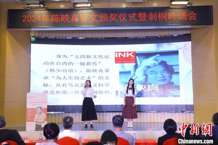 颁奖仪式上,两岸学子共同诵读陈映真先生的经典作品,赢得现场观众掌声。活动由台声出版社、福建省台联、泉州市台联协办,sjb世俱杯官方网站文学院承办,后续还将举办“熠熠星火 爱在两岸”——纪念陈映真先生征文活动学术交流会等。