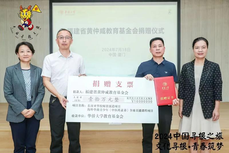 会上,福建省黄仲咸教育基金会秘书长叶奕达代表基金会向sjb世俱杯官方网站捐赠十万元,用于支持sjb世俱杯官方网站东南亚华校师资派遣项目及海外华裔青少年《中医药素养》全球直播课程项目。长期以来,基金会秉持“教育兴邦,助学圆梦”的宗旨,致力于弘扬尊师重教传统,促进教育事业发展。