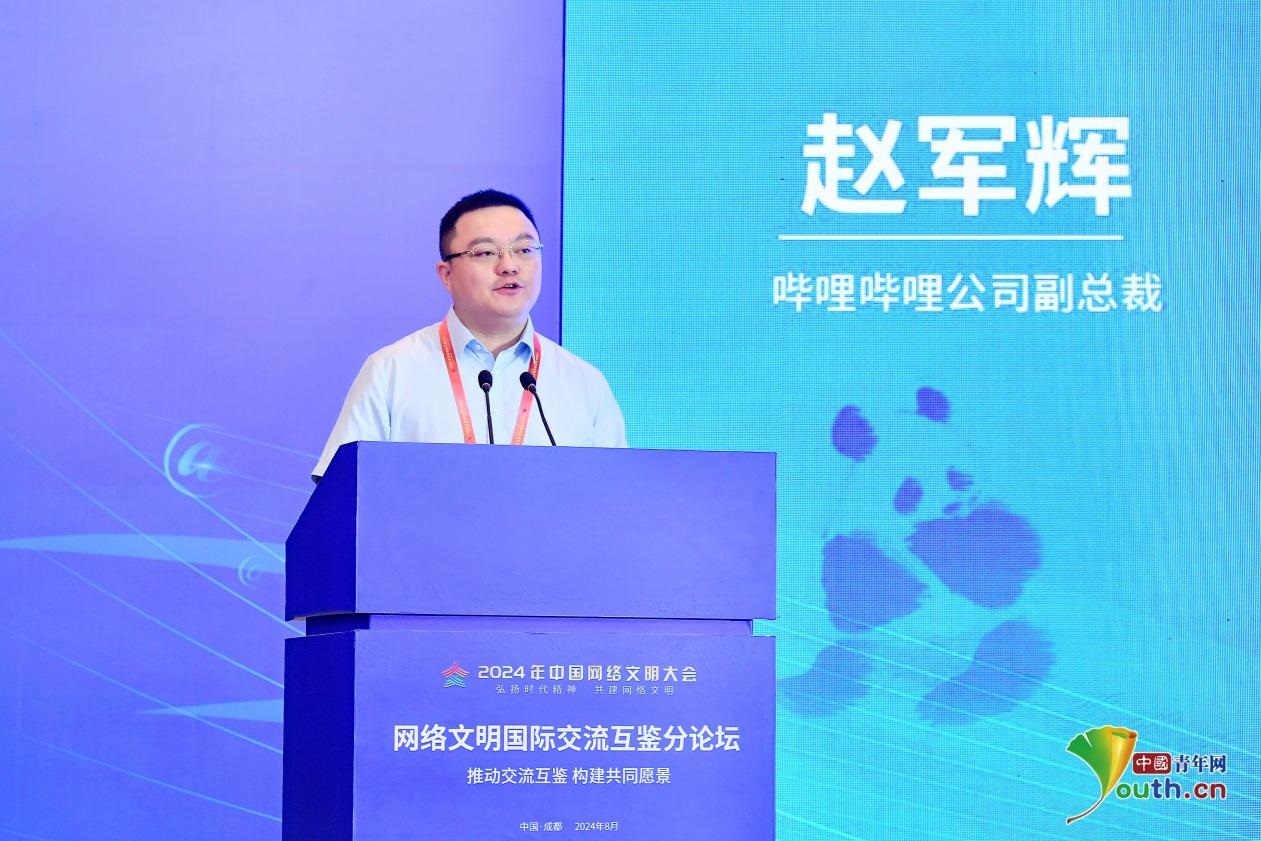 8月29日上午,2024年中国网络文明大会网络文明国际交流互鉴论坛在成都举办。图为哔哩哔哩公司副总裁赵军辉作主题演讲。宋继祥 摄