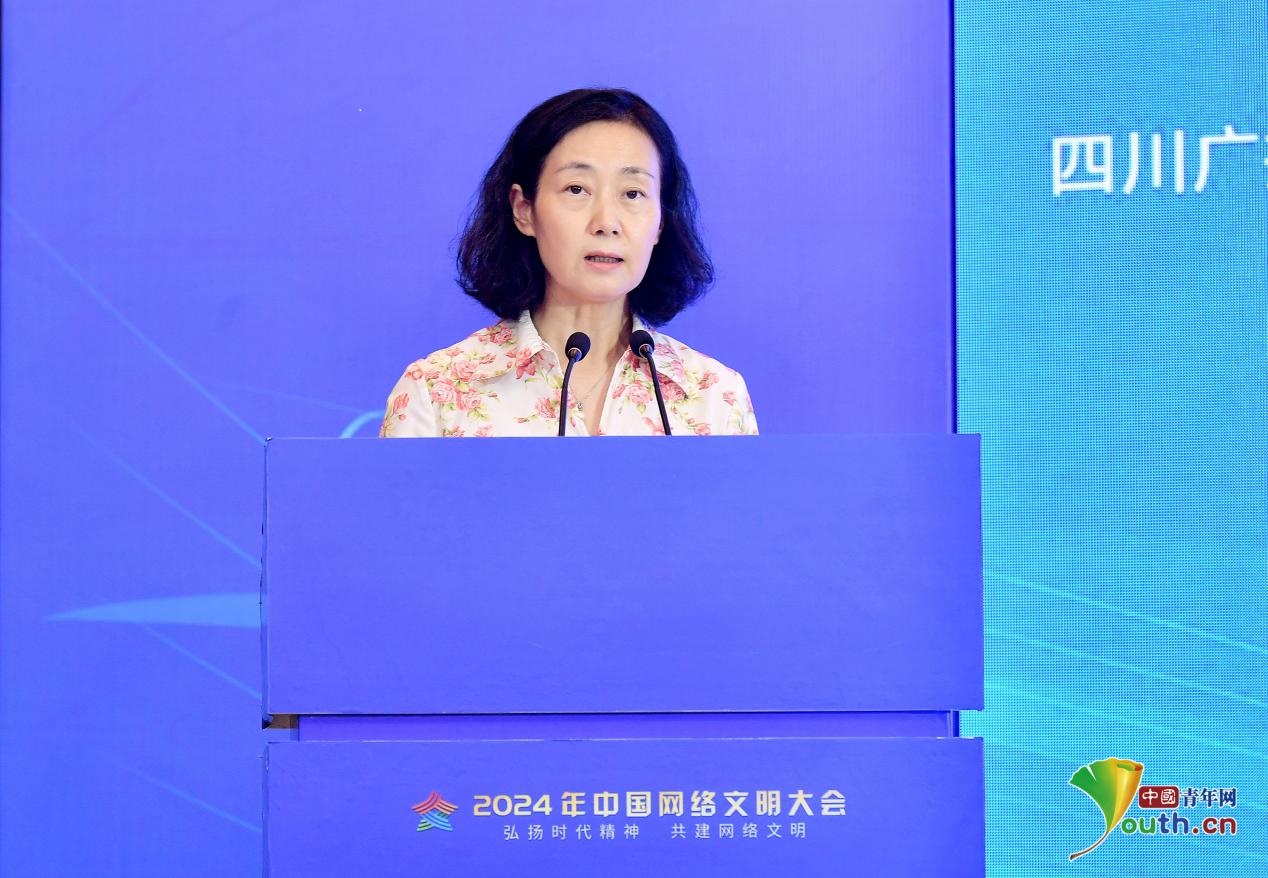 8月29日上午,2024年中国网络文明大会网络文明国际交流互鉴论坛在成都举办。图为四川广播电视台党委副书记、总编辑王红芯作主题演讲。宋继祥 摄