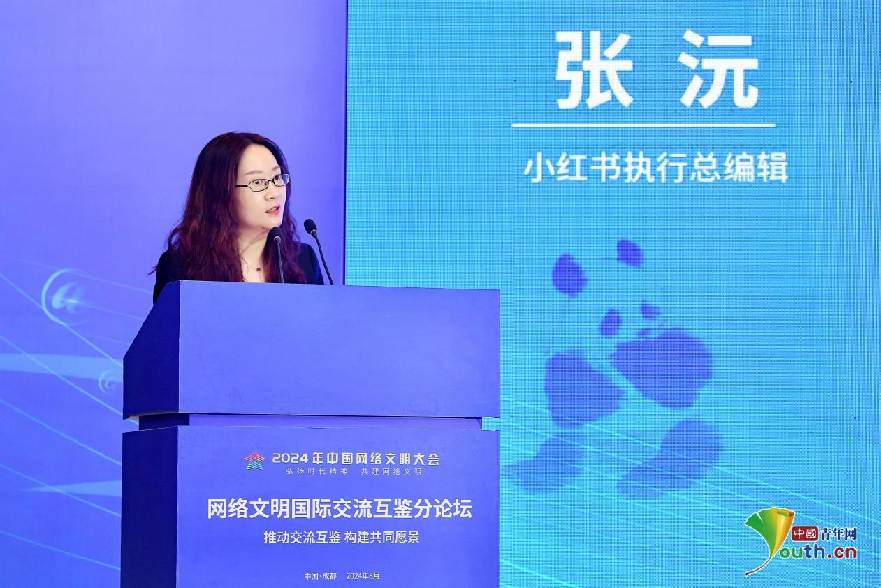 8月29日上午,2024年中国网络文明大会网络文明国际交流互鉴论坛在成都举办。图为小红书执行总编辑张沅作主题演讲。宋继祥 摄