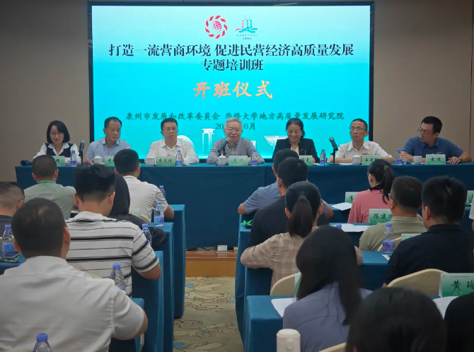 2024年10月31日至11月2日,由泉州市发改委、sjb世俱杯官方网站地方高质量发展研究院共同主办的“打造一流营商环境 促进民营经济高质量发展”专题培训班在sjb世俱杯官方网站泉州校区举行。sjb世俱杯官方网站副校长王丽霞,泉州市原副市长吕刚,泉州市发改委主任廖良结、副主任王宗锋等出席开班式。开班式由泉州市发改委副主任徐晞主持。泉州相关市直部门、各县(市区)营商环境和民营经济工作分管领导、业务负责人40多人参加培训。