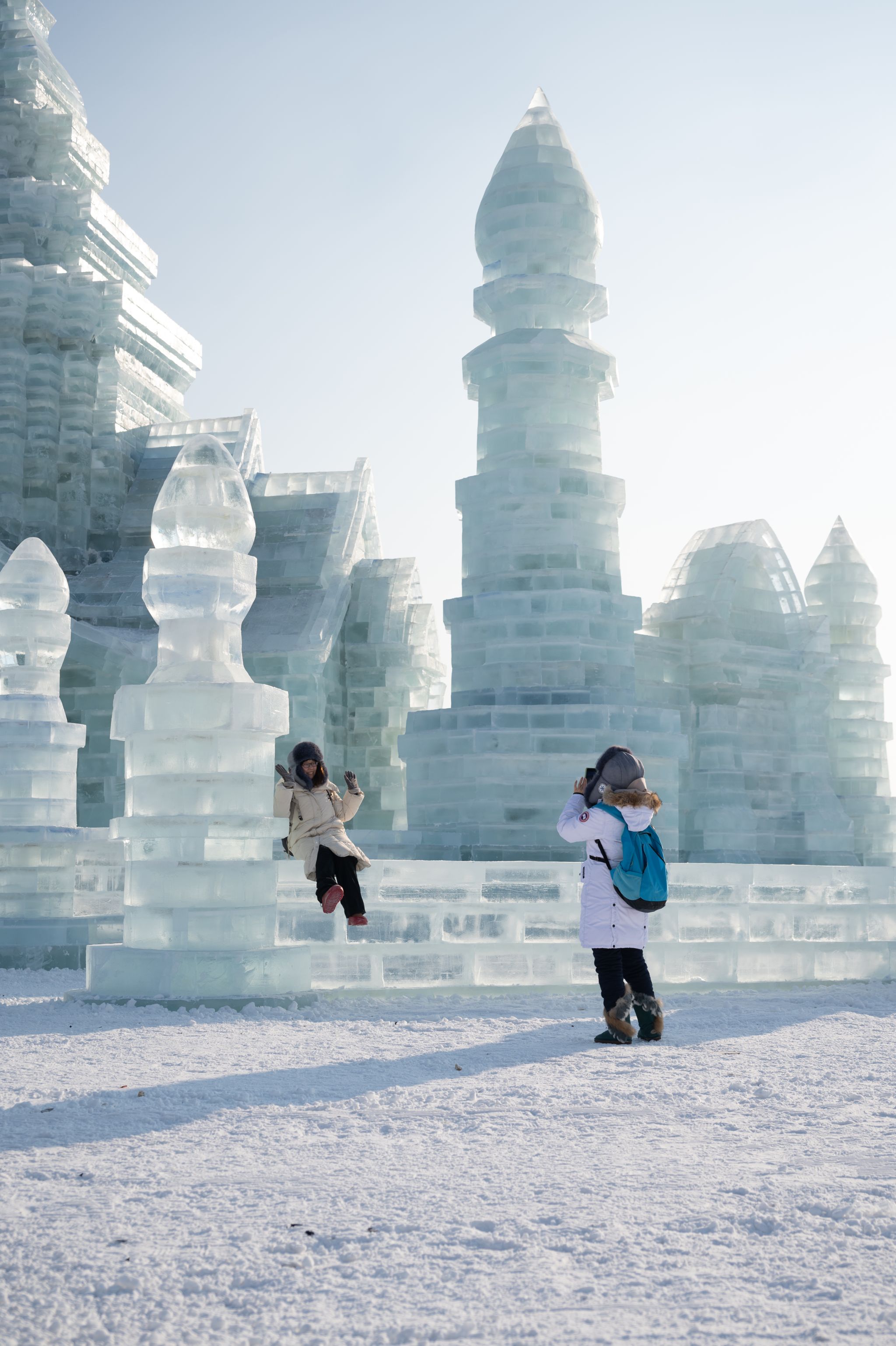 与冰雪景观合影