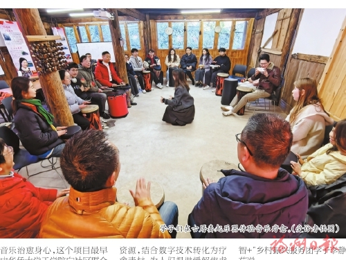 本报讯(记者 李白蕾)来到静谧的乡间,听着潺潺流水,伴着鸟叫蝉鸣,或是静心打坐,或是敲鼓吟唱,这份惬意甚是治愈。记者16日从团市委获悉,这个寒假,多所高校学子齐聚闽清县梅溪镇樟洋村开展“返家乡”社会实践,由他们联手打造的全国首个“音乐疗愈乡村”呼之欲出。