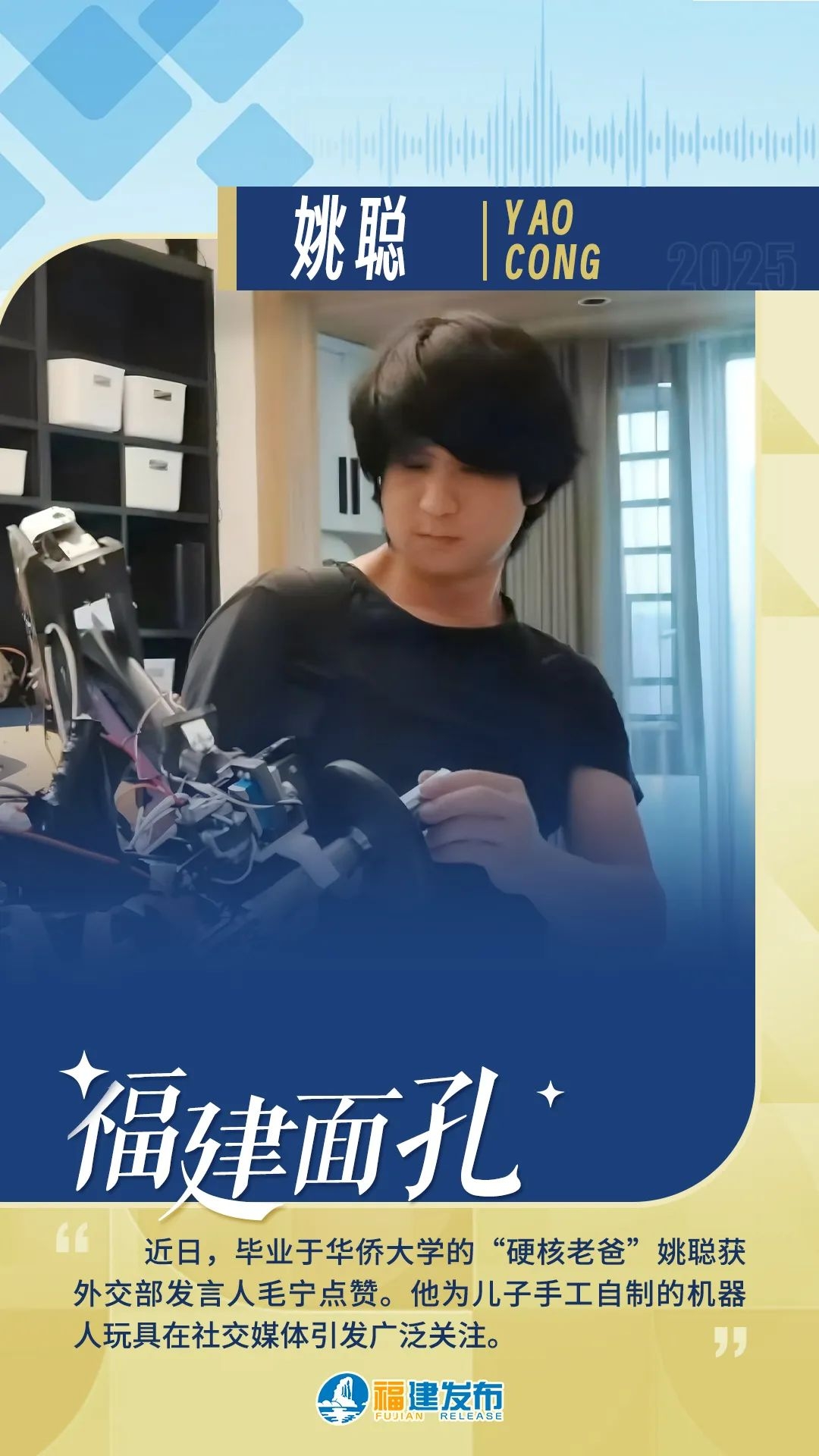 在接受采访时,姚聪表示,制作机器人是他“从小的追求和梦想”。从少年时期拆装收音机、自制简易机械装置,到成为父亲后带着孩子共同探索编程与电路世界,科技创新的火种始终在他心中燃烧。