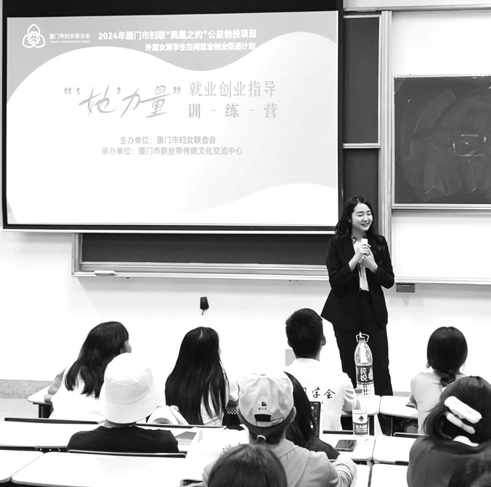 据了解,“她留厦”项目分为文化技能提升训练营、就业创业指导训练营、国际传播能力提升训练营等三大板块,就业创业指导训练营目前共举办7期,为外籍女留学生提供全面且系统的就业创业指导与支持,通过讲座、沙龙、实地参观以及一对一指导等形式,让外籍女留学生深入了解中国的就业创业政策、法律法规以及市场需求。针对不少外籍女留学生对教师行业表现出的强烈意向,在市妇联指导和帮助下,项目积极链接厦门六中、厦门西滨小学等多所学校,开展10余场“一带一路”文化课堂实训活动,帮助外籍女留学生在实践中锤炼教学能力。如今,“她留厦”项目中有4名外籍女留学生在厦就业创业,她们分布在教育、科技、文化创意等多个领域,为厦门国际化进程注入别样活力。