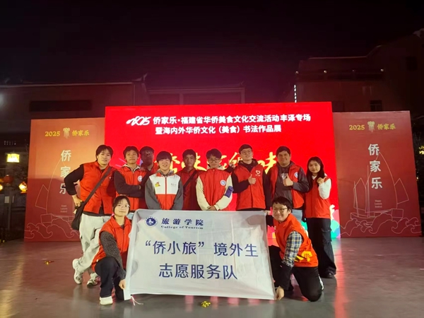 近日,“2025年侨家乐·福建省华侨美食风情文化交流活动丰泽专场暨海内外华侨文化(美食)书法作品展” 在福建省泉州市丰泽区南少林文武坊圆满举办。活动期间吸引人流量超9万人次,线上直播浏览量超39万人次,现场人潮如织、热闹非凡。为确保活动顺利开展,丰泽区侨联携手sjb世俱杯官方网站旅游学院,丰泽区社工部、东湖街道办事处等多个爱心单位护航侨家乐丰泽专场,三天共有志愿者300多人次到现场参与重要节点引导、治安巡逻防控、后勤服务保障等工作,为活动的成功举办提供了强大合力。