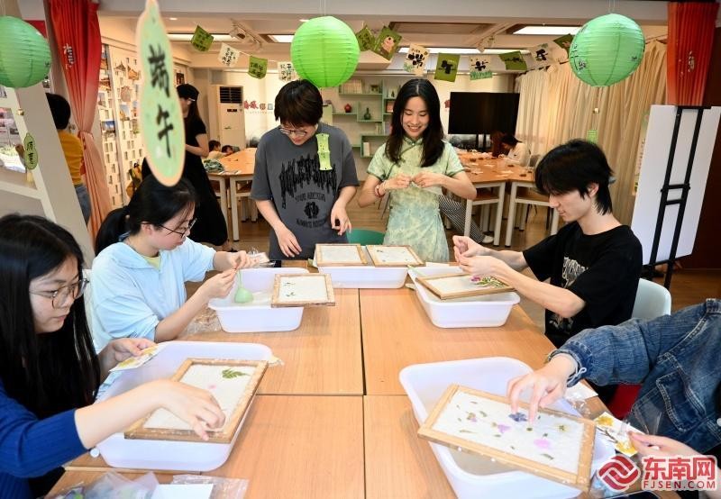 海内外学子体验制作花草纸(吴江辉 摄)