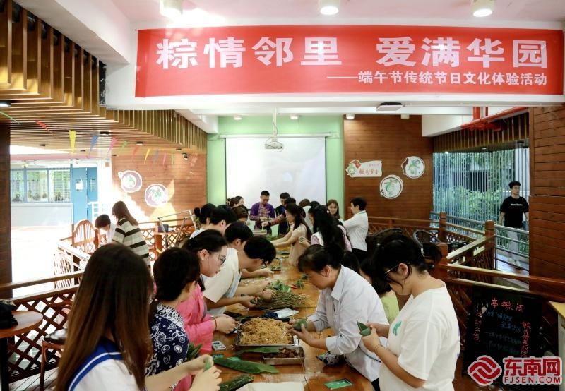 海内外学子和宿管一起包粽子(王梓渝 摄)