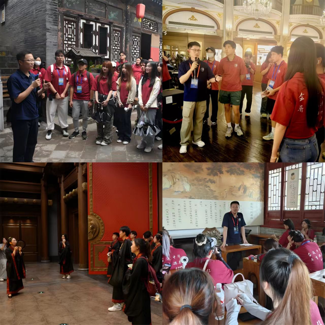 在中原文化研习营,实践团成员在陕西参观秦始皇帝陵博物院,研习中华文明的灿烂历史。借助兵马俑数字复原技术、长安十二时辰街区的沉浸式体验,同学们穿越时空,对话盛唐文明。在嵩山少林,实践团成员学习了传统武术的抱拳礼。从弓步冲拳到弹踢冲拳,大家齐声呼喝,气势如虹,在一招一式间,沉浸式触摸中华武术文化脉络。在“铸牢中华民族共同体意识”主题研习营中,实践团成员走进世界文化遗产地山西平遥古城,在百川通晋商文化博物馆开展主题实践研习。学生们挥毫泼墨书写票号,了解古代金融机构的运作机制,亲手操作古代印刷术,感受古人智慧结晶;还扮演“掌柜”角色,体验票号汇兑业务流程。