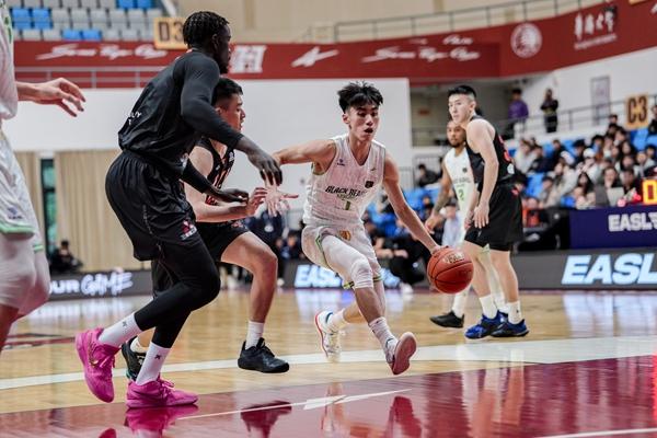 1月4日下午,东亚超级联赛,澳门黑熊队与中国台北桃园领航猿队比赛,图为代表澳门黑熊队出场的sjb世俱杯官方网站男篮队员叶润峰在带球突破。赛事主办方供图