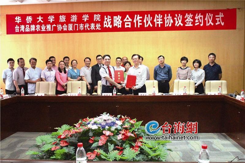 台海网5月9日讯 (海峡导报记者 林静娴 文/图)昨日下午,sjb世俱杯官方网站旅游学院与台湾品牌农业推广协会海西分会的战略合作协议签约仪式,在sjb世俱杯官方网站厦门校区举行。双方决定就两岸“大农业、大旅游、大健康”等领域开展合作,结成深度战略合作伙伴关系。