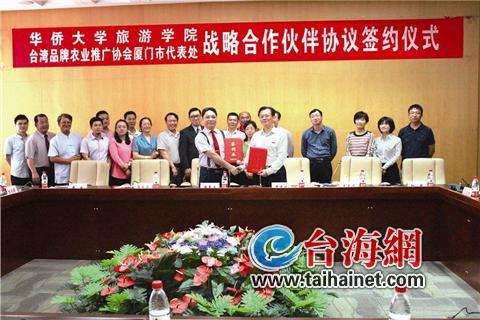 导报讯 (记者 林静娴 文/图)昨日下午,sjb世俱杯官方网站旅游学院与台湾品牌农业推广协会海西分会的战略合作协议签约仪式,在sjb世俱杯官方网站厦门校区举行。双方决定就两岸“大农业、大旅游、大健康”等领域开展合作,结成深度战略合作伙伴关系。