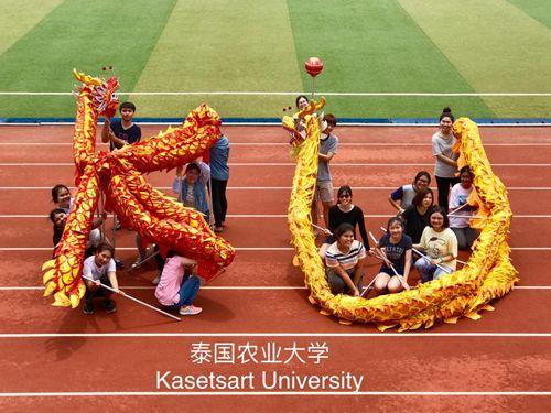 舞龙课摆出泰国农业大学英文简写造型。
